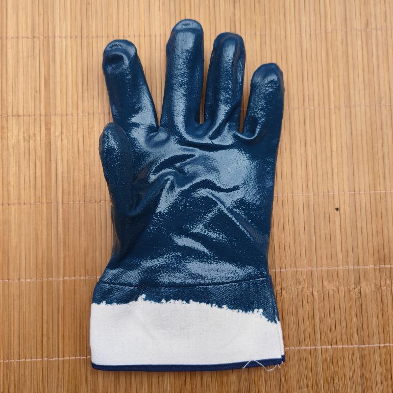 4#绒布蓝丁腈满挂手套--宽口--加绒;