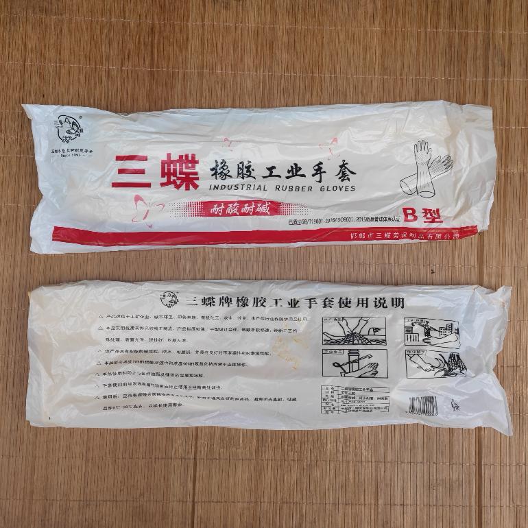 三蝶B型55cm中厚★340G黄色(无黑)耐酸碱橡胶手套