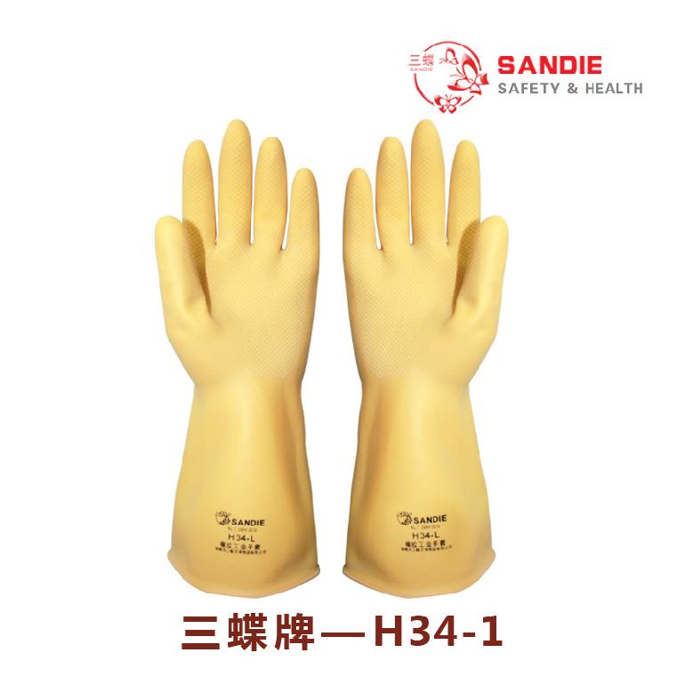 三蝶B型34cm中厚★133g黄色(无黑)EL34-L耐酸碱橡胶手套