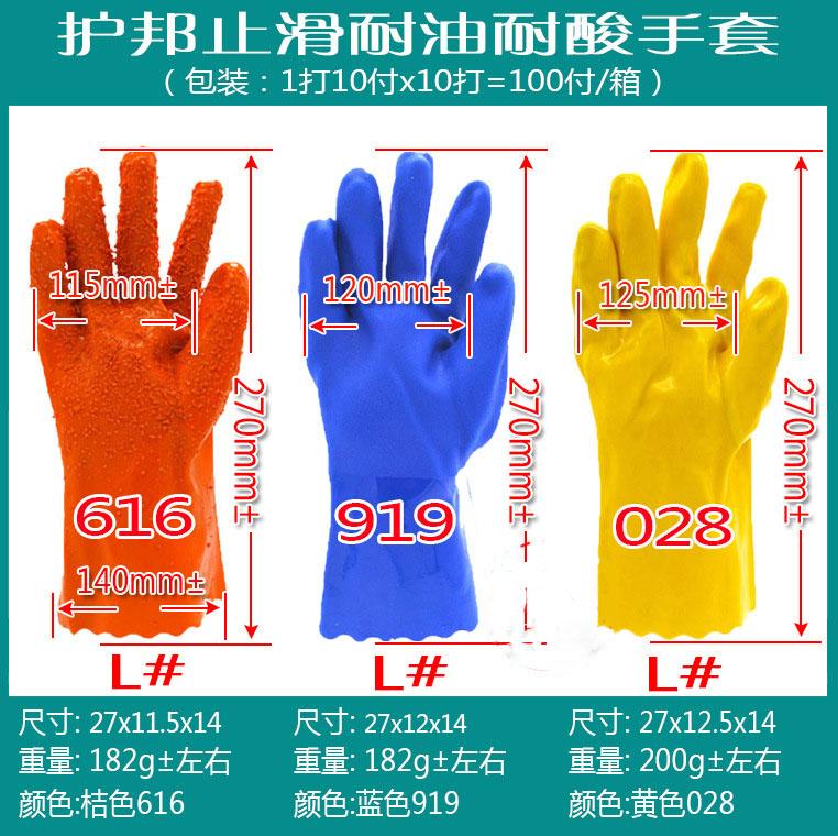 护邦616止滑手套/桔色胶/防油耐酸碱手套182g